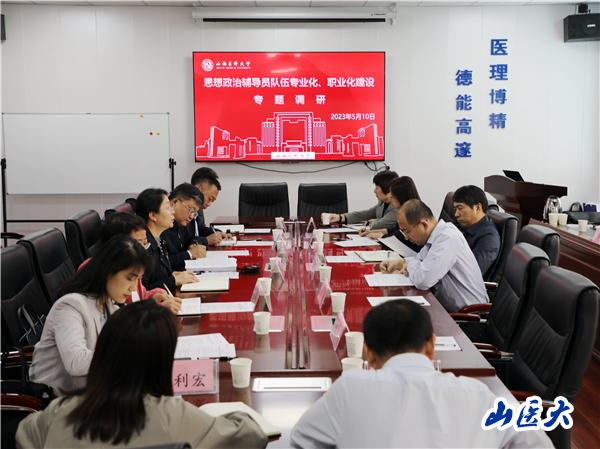 5月10日下午,校党委副书记彭月兰深入药学院调研“思想政治工作队伍专业化职业化建设”,全省主题教育巡回指导组第二十五组李刚莅临指导,学校相关部门负责人、药学院领导班子成员、专兼职辅导员参加调研。调研座谈会由药学院党委副书记马振中主持。