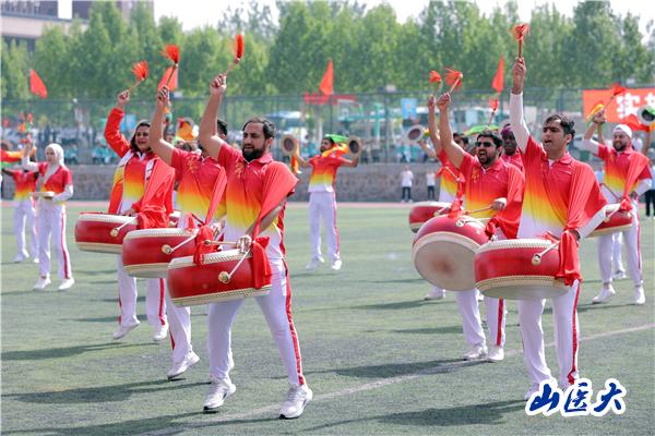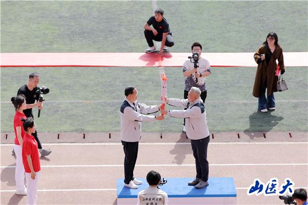 各单位整队退场后,大型文体展演“走进新时代、奋进新征程”开始。原山西省卫生厅党组书记、厅长李俊峰等校友代表接力传递着象征山医精神的“奋进之光”,展示着荣耀与传承。全校各院系参演人员、夕阳红舞蹈队、红石榴工作室、法医学院啦啦队、国际教育学院劲风鼓乐团和800余名师生员工的精彩表演将运动会开幕式的气氛再次推向高潮。