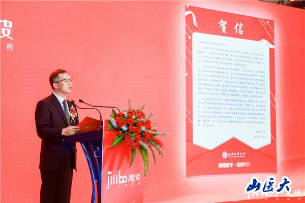 在上市仪式结束后的答谢酒会上,焦向英宣读了我校的贺信,表达了全体山医人对锦波生物的最诚挚、最热烈的祝贺。贺信表示,作为高新技术企业和国家级“专精特新”小巨人企业,锦波公司多年的发展充分体现了经营管理的高水平,展示出了良好的业绩和发展潜力。多年来,双方长期深度开展校企合作,在共建山西功能蛋白重点实验室,建成现代生物医药产业学院,定向开展行业人才培养,推进实习实践和创业就业基地建设等方面都取得了显著成效。今天,锦波生物的成功上市,将插上腾飞的翅膀,登上更高的平台,必能以上市为契机,乘势而上,依托资本市场融资平台,发挥自主创新技术优势,进一步提升核心竞争能力,抢占行业发展制高点,围绕生命健康新材料和抗病毒领域不断创新发展。必将在杨霞董事长的领导下,带着山医人“求实精进、坚韧弘毅”的精神,构建起锦波生物的新时代、新发展和新格局、推动锦波生物实现跨越式高质量发展。未来,校企双方必能进一步深化合作,持续加强产学研合作,优势互补,共同探索科技创新和转化的新模式,取得新业绩,开创新典范、迎来锦波生物更加辉煌的明天,在推动中国生物医药产业的快速发展方面贡献出更大的力量。