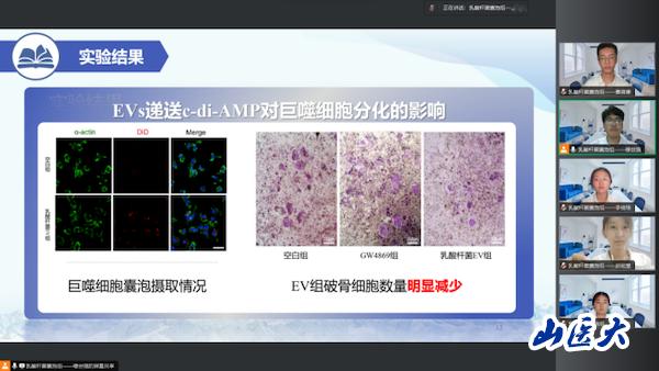 口腔医学院参赛作品《乳酸杆菌细胞外囊泡经 c-di-AMP 调控 STING-IFN-β影响牙槽骨巨噬细胞破骨向分化的机制研究》项目创新性地探讨了一种针对牙周炎导致的牙槽骨吸收的新型治疗方式:乳酸杆菌释放的细胞外囊泡内含环二腺苷酸可跨物种激活人巨噬细胞表面干扰素基因刺激因子从而调控巨噬细胞破骨向分化治疗其导致的牙槽骨吸收,同时避免乳酸杆菌的产酸致龋作用。团队成员从牙周炎导致的牙槽骨吸收入手,并深入探究其发生发展机制,提出了乳酸杆菌囊泡抑制牙槽骨吸收的治疗途径,实验设计中,团队成员依托于重点实验室和临床研究中心,熟练掌握了相关实验途径与实验方法,具有理论与人员安排可行性。在实验完善实施方面,团队成员多学科交叉互补,专创融合,层层深入,交叉验证为牙周炎牙槽骨吸收的临床治疗拓展新的视角。