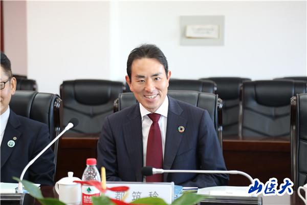 10月27日下午,校长解军在中都校区教学办公楼第五会议室会见日本埼玉县县民生活部部长岛田繁率领的日本埼玉县代表团,并与日本药科大学校长都筑稔共同签署两校合作谅解备忘录。山西省人民政府外事办公室亚洲处处长史国伟、山西省教育厅行政审批处副处长王保成以及我校相关部门单位负责人参加座谈。校党委常委、副校长赵文军主持签约座谈会。