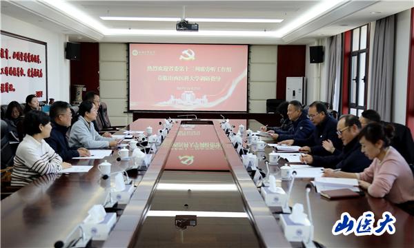 会谈中,王军、解军代表学校对省委第十三列席旁听工作组和省委教育工委领导莅临我校调研表示欢迎,对一直以来对我校工作的指导和关心表示感谢,并就学校高质量发展、学科建设、理论学习、思想政治教育等方面的工作进行了深入交流。彭月兰就我校党委理论学习中心组、各基层党组织理论学习和中心组规范年建设情况进行了工作汇报。