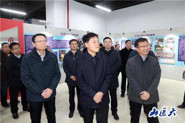 11月27日,晋中市委副书记、市长刘星带领市直有关部门和市县两级部分医疗机构负责同志,深入学校调研并召开市校协同创新发展座谈会。校党委书记王军出席并主持座谈会,校长解军出席会议。晋中市副市长张拥军,市政府党组成员、秘书长裴彦巍,校党委副书记彭月兰,校党委常委、省纪委监委驻校纪检监察组组长韩树彪,校党委常委、副校长刘春,校党委常委、副校长赵文军,学校相关部门单位负责人和部分学科专家参加座谈。