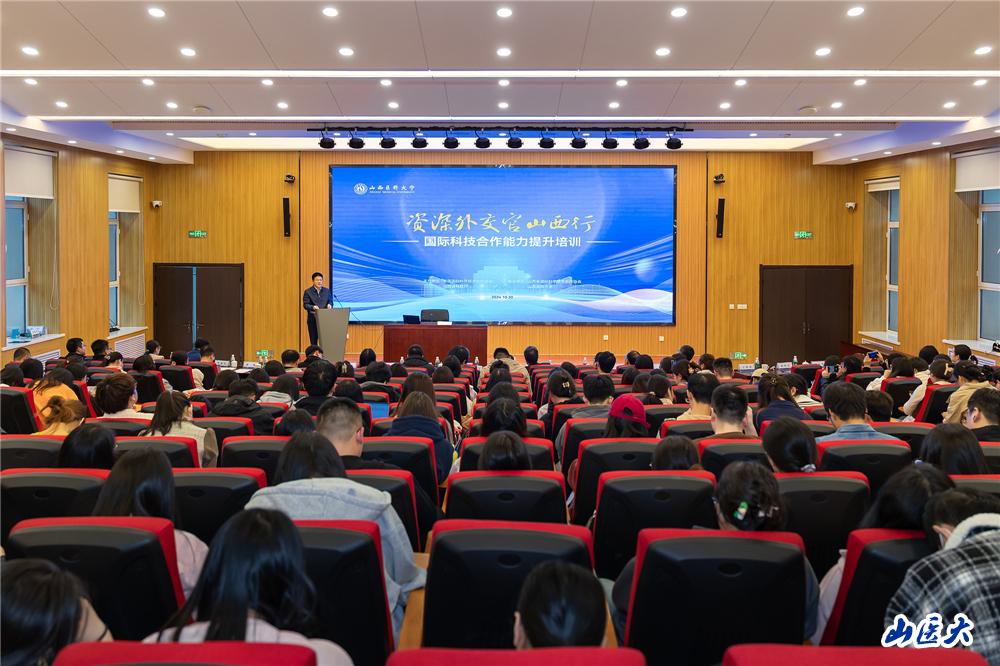 10月30日,由中国国际科学技术合作协会、山西省科技厅主办,我校承办的科技外交官之家—2024年资深外交官山西行活动举行。原科技部党组成员、副部长、原《科技日报》社长张景安,原国务院参事、原国家汉办主任许琳,原科技部国际合作司司长靳晓明,原驻加拿大使馆公使参赞、科技部外国专家服务司原司长王俊明,原驻英国使馆公使衔参赞蒋苏南,原驻以色列使馆科技参赞韩军,中国国际科学技术合作协会执行副会长、秘书长孙丽杰,北京维卓致远医疗科技股份有限公司董事长鲁通,省科技厅党组书记、厅长刘俊义,党组成员、副厅长王晋斌,我校党委书记王军、副校长张岩波等出席活动。