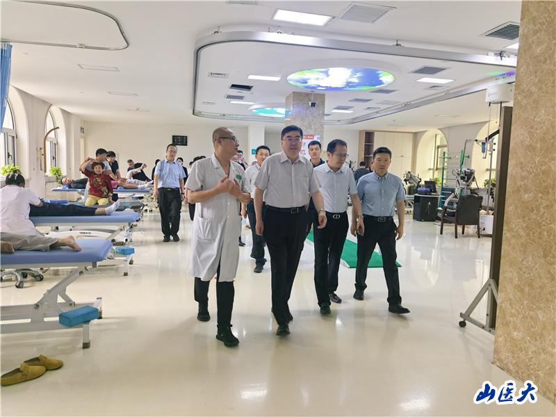 杨青听取了团队关于实验室验收以来的工作进展汇报,观摩了尘肺病AI预警系统,查看了体检中心、尘肺病专科病区、康复训练中心,并仔细询问正在康复训练的患者,了解他们的状况,倾听他们的需求。他高度肯定学校关于SCOPE(Shanxi Coal Occupational Population Exposure Cohort)队列建设构想与技术路线,指出学校科研团队要在“人民健康高于一切”思想指引下,以百年老校深厚积淀为基础的自觉,以严谨务实的科学精神,以政产学研结合的灵活性,整合一切可以整合的力量,把队列数据资源建设好,借助国家算力平台、大数据和人工智能的技术赋能,发挥公卫学院在算法领域的优势,强强联合再上新台阶,以点上的创新带动面上的突破,开创“山西优势、世界领先”的尘肺病防治研究新格局。