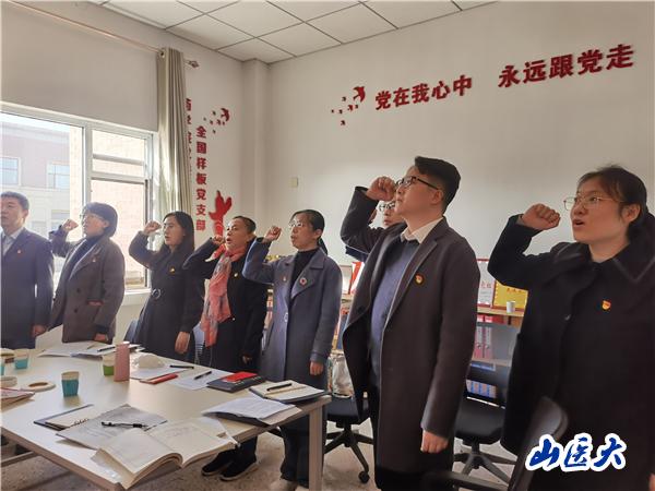 会上,邢荣荣带领全体党员高举右手,重温入党誓词,并代表党支部委员会汇报上一年度组织生活会整改情况、作对照检查,重点围绕深刻领悟“两个确立”的决定性意义、坚决做到“两个维护”,学懂弄通做实习近平新时代中国特色社会主义思想,增强党组织政治功能和组织功能来进行查摆,把力量凝聚到党的二十大精神上来。