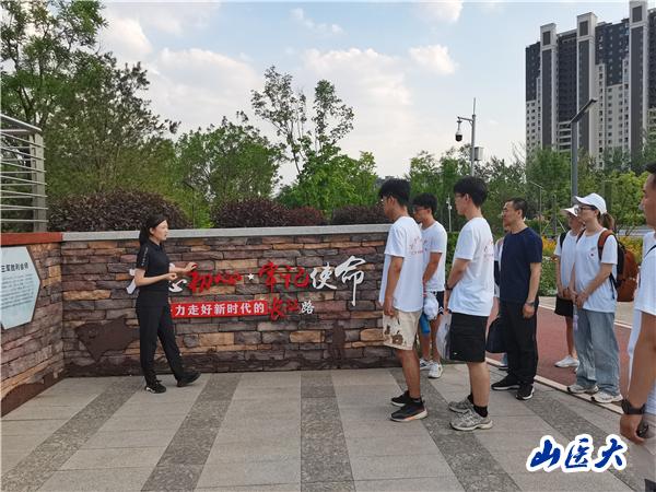 6月26日上午,实践队前往清徐县红色教育基地——城北体育公园参观。通过工作人员的讲解,队员们再次重温了从五四运动以来中国共产党的发展历程,感悟百年来中国人民在艰苦奋斗中积攒的众多宝贵精神财富,见证了中国共产党始终以人民为中心、为人民谋幸福、为民族谋复兴的初心和使命。