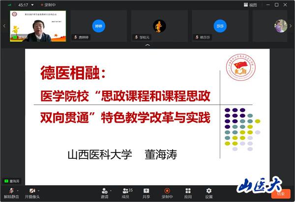 董海涛指出,实现医学生健康发展,不仅要靠思政课程教师的贡献,还需要每一个专业课程教师的作用,努力承担起为党育人、为国育才的重任。
