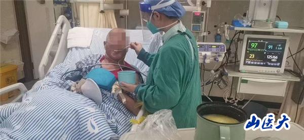 在第二医院急诊科,心脑血管疾病患者占比较大,加上过年期间饮食放纵、作息紊乱、情绪激动,尤其是本身患有高血压、肥胖的高危人群,极易诱发心脑血管意外事件。有一位急性心力衰竭的大爷,刚进急诊ICU时烦躁、不配合治疗,通过积极纠正心衰,护理人员努力为其进行心理健康疏导,让大爷感受到亲人般的温暖。医护人员说:“除药物、手术之外,我们能给予患者的最好的治疗就是安慰”。