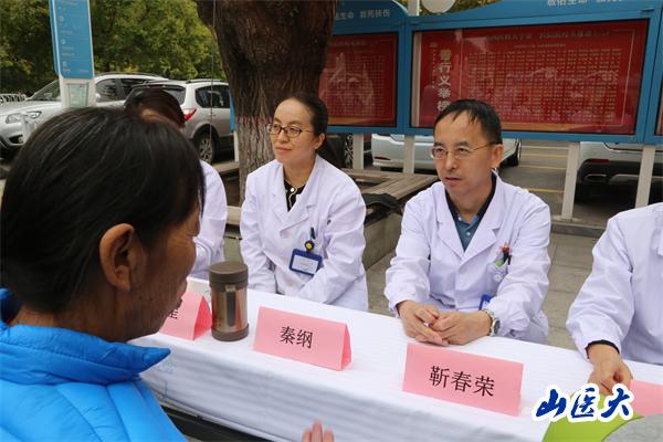活动现场,第一医院副院长韩清华教授、心血管内科主持工作的副主任靳春荣教授带领10余名心血管专家为前来咨询的群众测量血压、心率,对他们心血管疾病危险因素的控制、治疗及预后等方面给出建议,同时针对不同情况提供合理的治疗方案。