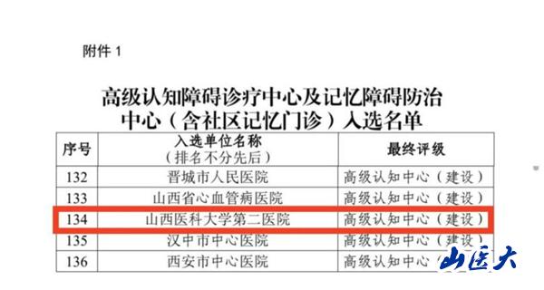 10月19日,国家卫生健康委能力建设和继续教育中心公布了《高级认知障碍诊疗中心及记忆障碍防治中心》(含社区记忆门诊)入选名单。我校第二医院从733家申报单位中脱颖而出,成功入选国家高级认知障碍诊疗中心建设单位,该中心的获批标志着我校第二医院认知障碍的诊治水平得到国家级权威机构认证。