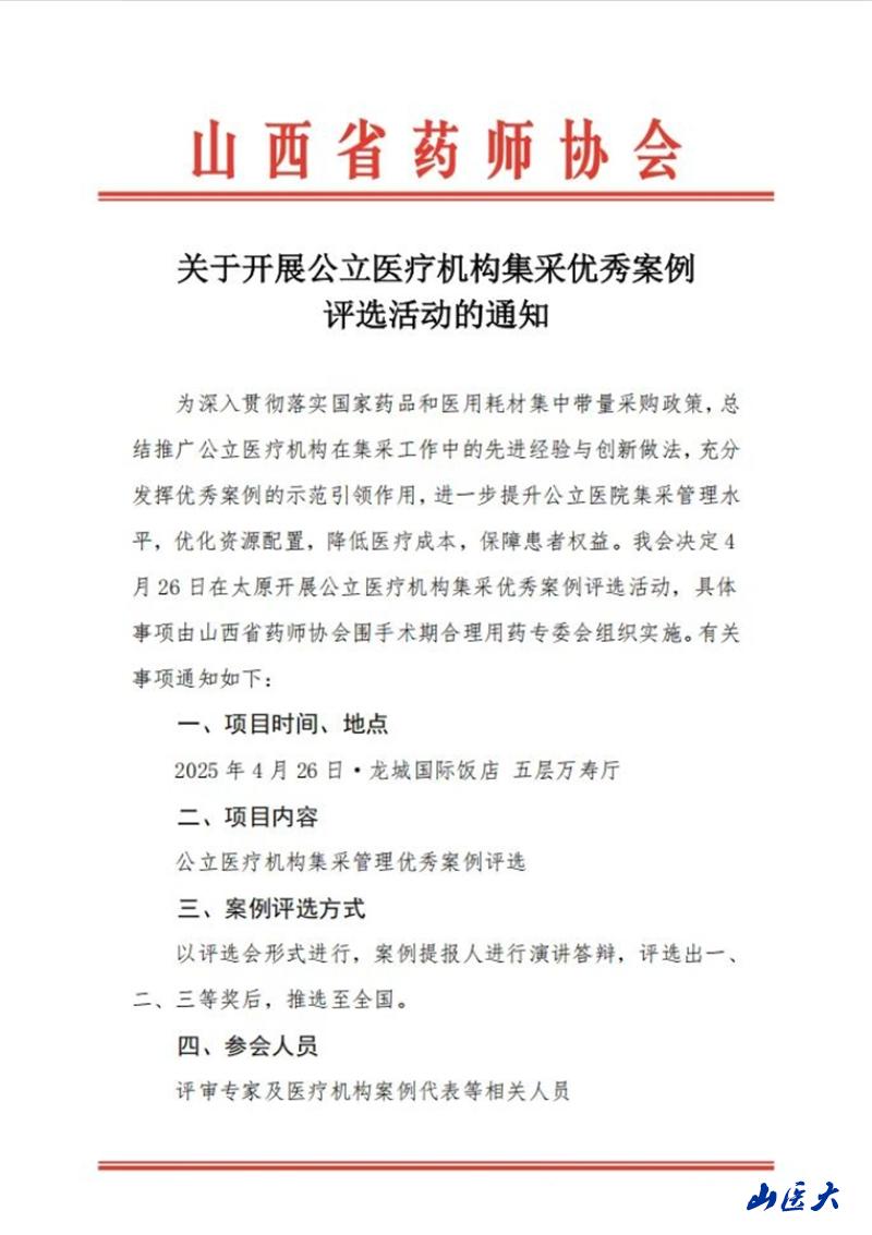 我校第一医院荣获山西省公立医疗机构集采优秀案例三等奖