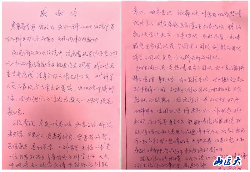 目前,患者恢复良好,各项指标逐步恢复正常。患者及家属特意送来感谢信,信中饱含对介入治疗科团队的感激之情:“从术前耐心细致的病情沟通,到术中医护人员的专注操作,再到术后贴心入微的护理,我们深切感受到了团队的专业与负责。是你们的‘精准技术’和‘暖心服务’,让我们在对抗病魔时充满信心与希望。”