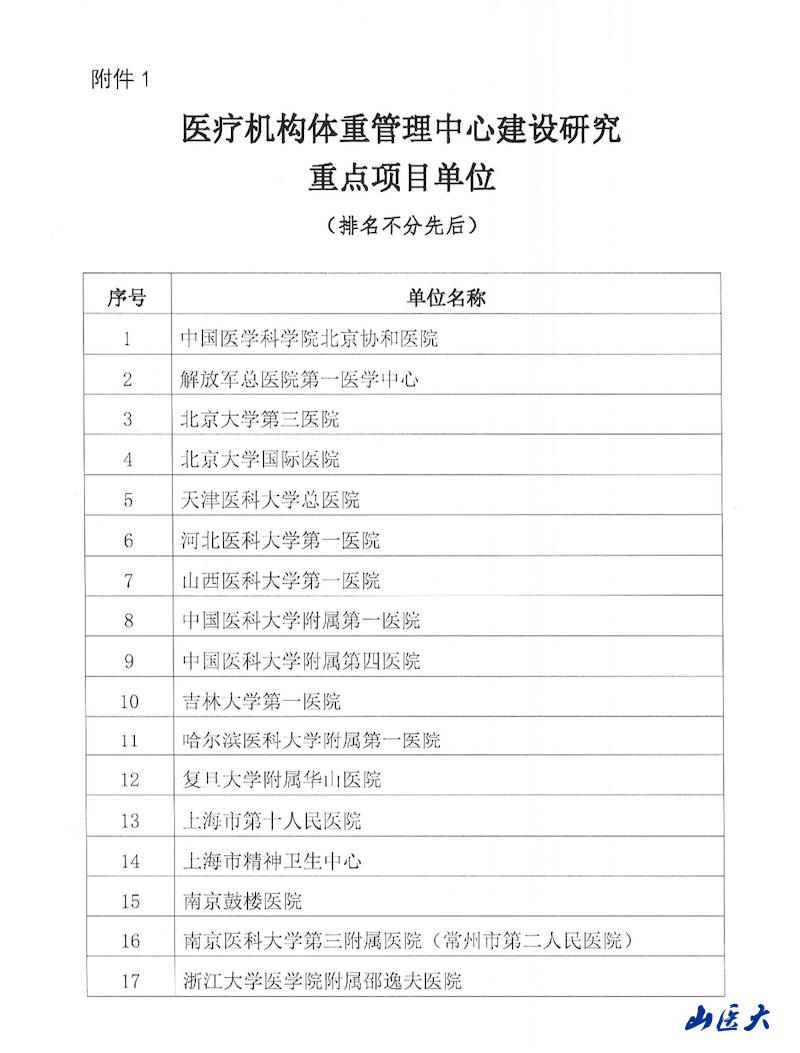 喜讯!我校第一医院体重管理中心获批国家卫健委医院管理研究所重点项目单位