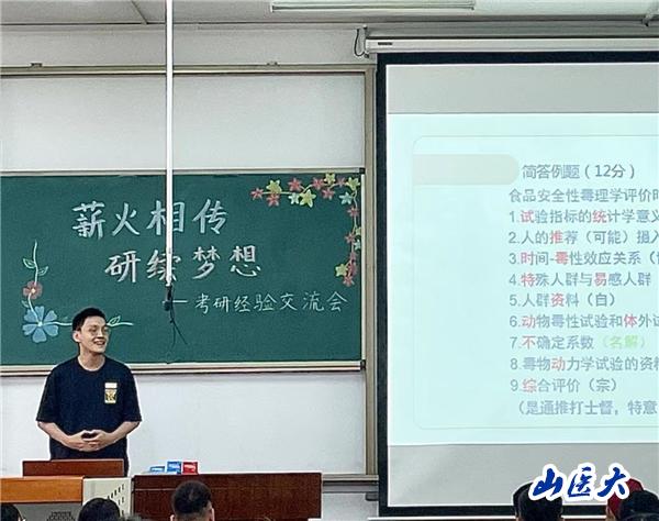 为营造良好的考研学习氛围,增强考研信心,为即将考研的同学提供宝贵经验,5月17日下午,我校公共卫生学院于中都校区至真201室举办了“薪火相传 研续梦想”考研经验交流会。本次交流会邀请了2018级预防医学专业林珊羽、林悦欣、张子浩和2019级卫生检验与检疫专业刘丹丹、白虹静五位同学主讲,2021级预防医学专业王屹然主持,学院共计100余名同学参加。