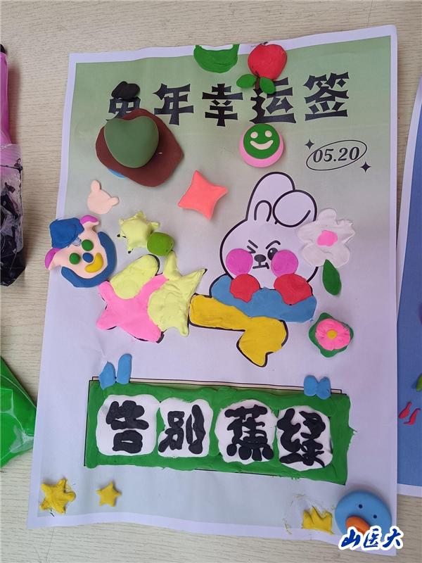 所有游戏中最引人驻足的莫过于“‘粘’走不开心”,同学们来到棚子中,用粘土塑造图案,共同完成了一些作品,希望这些作品能够为同学们带去战胜焦虑的信心与力量。