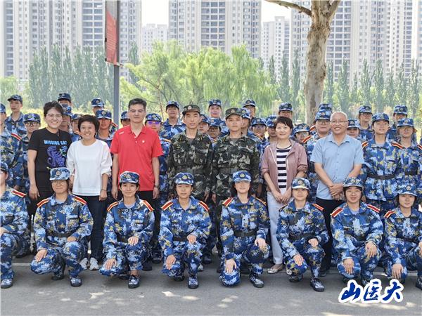 最后,老师们与管理学院全体参训成员合照留念。在新学期开学之际,此次慰问充分体现了学院对军训工作的关切与重视,参训学生深受鼓舞,将以更热情饱满的状态迎接下阶段的军事训练,高标准完成各项军训项目,展现山医管院学子的崭新风貌!