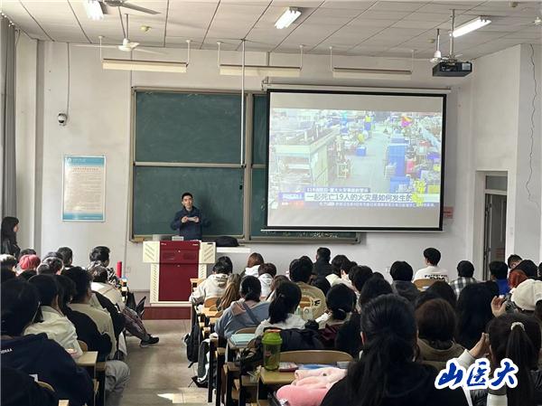 为了提高师生消防安全意识,加强消防安全管理,提高自救能力和应急处理能力,3月27日,生物医学工程系联合武装保卫部在我校中都校区慎思B205教室开展了消防安全教育和消防演练活动,22级和23级全体学生参加活动。武装保卫部李学智老师,辅导员王佳伟、庞南现场组织指导活动。活动邀请山西众卫安全宣传服务有限公司讲师徐杰进行现场培训,徐杰从事防火科普宣传工作多年,具有丰富的理论知识和实践经验。他从提高意识、学习知识、加强实践三方面进行精彩讲解。