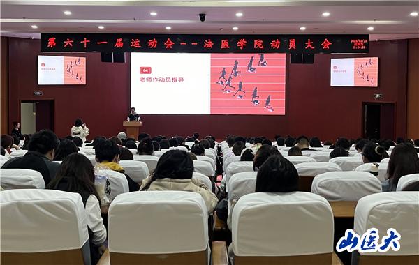 会上,陈嘉婷为大家介绍了法医学院在我校历届运动会上获得的佳绩,通过视频为大家播放了运动员比赛期间的精彩瞬间,让现场每一位同学感受到了青春在赛场上的热血与激情。院学生会文体部部长王成汗为大家详细介绍了本次运动会的项目列表,并提出运动员赛前训练和正式比赛时的工作安排和要求,呼吁全体同学踊跃报名、积极训练。