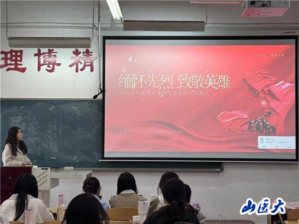 4月3日,公共卫生学院2021级卫生检验与检疫专业在中都校区慎思A105室开展了“缅怀先烈 致敬英雄”主题团日活动。活动由团支部书记李卓如、安佳怡主持,2021级卫检专业全体同学参加。