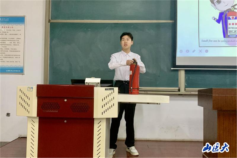 宣讲同学从自然灾害类事件入手,详细介绍了有关地震避险的自救知识和关于消防安全的逃生知识。此外,从交通安全、人身安全、财产安全的角度出发,通过真实案例引入,提醒同学出行时遵守交规;在公共场所保持警觉,避免拥挤区域,遭遇紧急情况时,迅速采取防护措施,确保自身安全。最后,三位骑兵现场演示了手提式灭火器的使用方法,同学们纷纷表示受益匪浅。