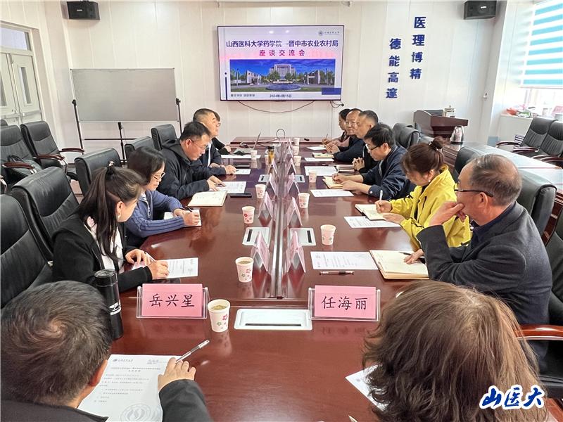 4月15日下午,晋中市农业农村局四级调研员李明远等一行九人来我校药学院进行座谈交流。药学院副院长(主持工作)侯锐钢、副院长班树荣,中药学教研室高建平和杨官娥两位教授以及部分研究生参加了座谈会。
