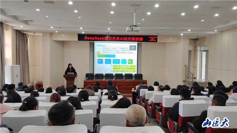 2月21日下午,药学院联合计算机教学部、网络中心在明德楼一层报告厅举办了“Deepseek助力开发AI时代新技能”讲座。讲座由山西大学计算机与信息技术学院杨红菊副教授主讲,150余名师生齐聚一堂,共同探索AI领域的前沿知识。药学院副院长班树荣主持讲座。