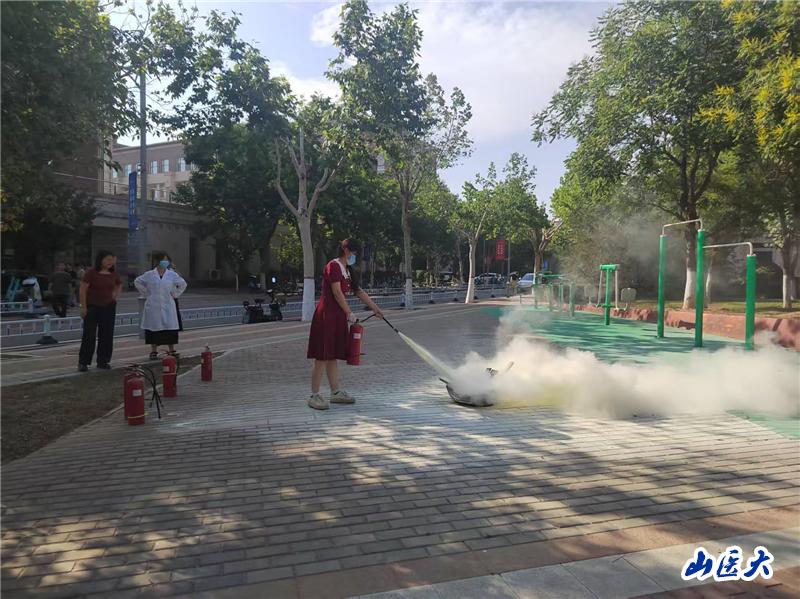 随后,在王峰教官与学校保卫部工作人员的专业指导下开展了疏散演练,师生遵循 "捂口鼻、弯腰低姿、沿标识疏散" 规范,100余人以零失误完成紧急撤离,展现标准化应急响应能力。在灭火实操环节,教官演示灭火器"提、拔、握、压"四步操作法,师生通过扑灭模拟火情的实战体验,切实掌握安全生产月强调的"初期火灾处置"核心技能。